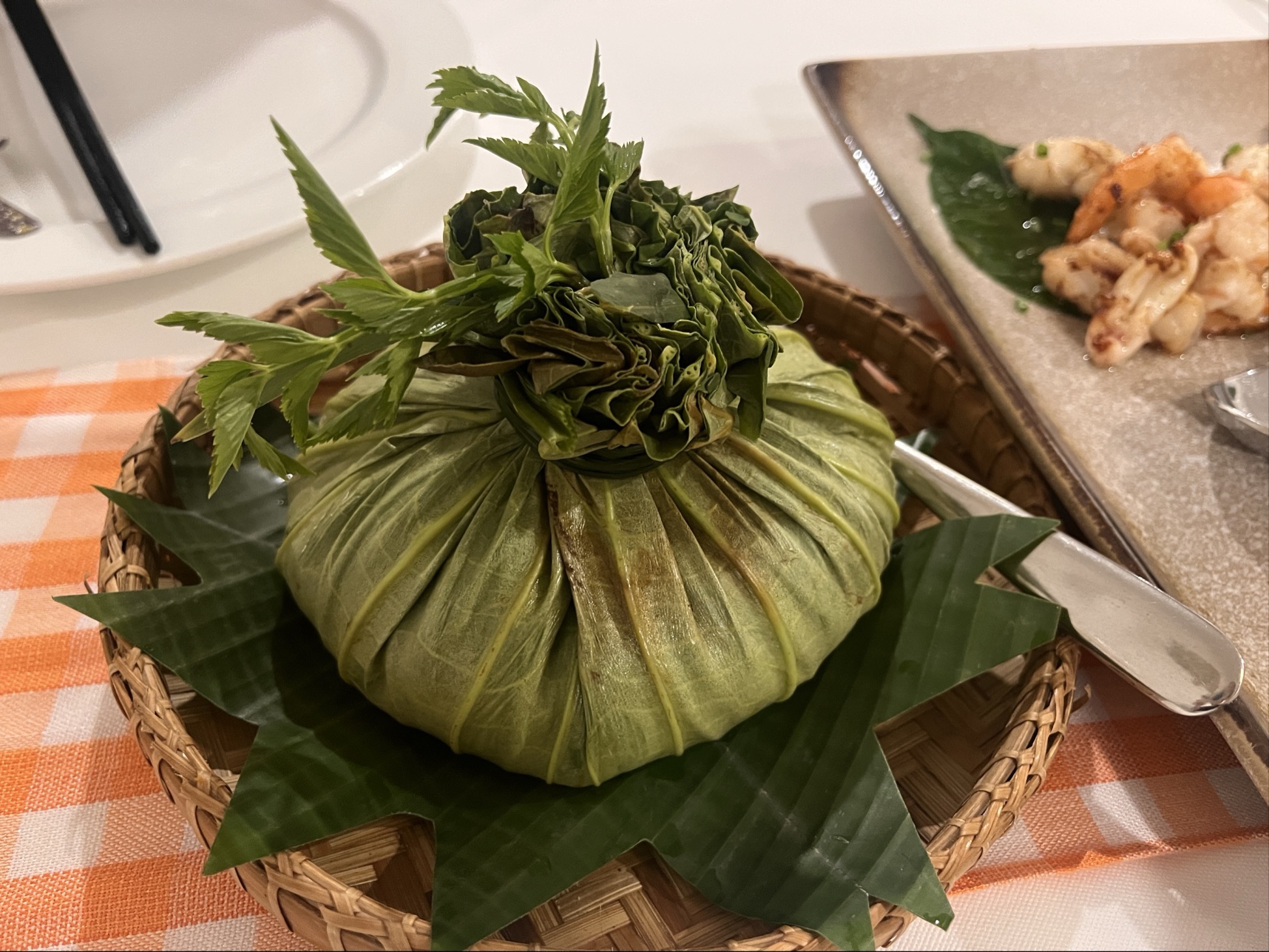 蓮の葉に包まれた見た目はかなりインパクトあり。